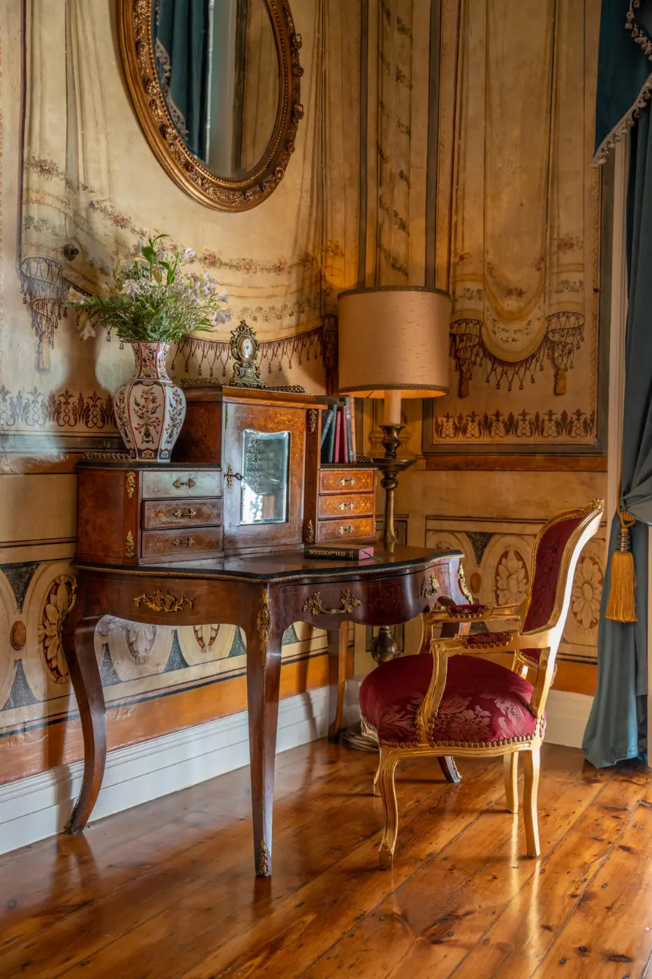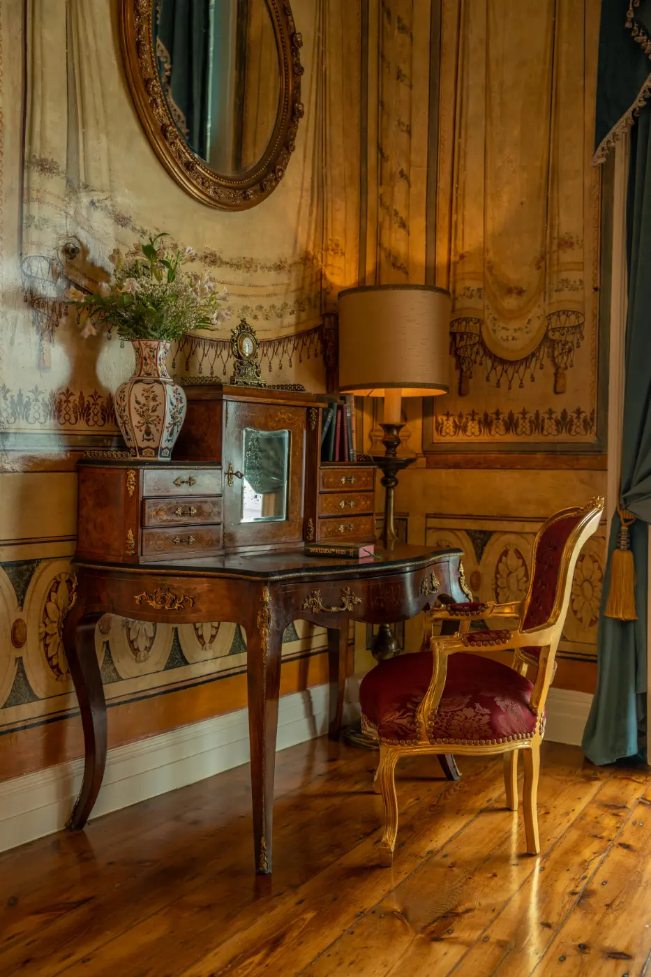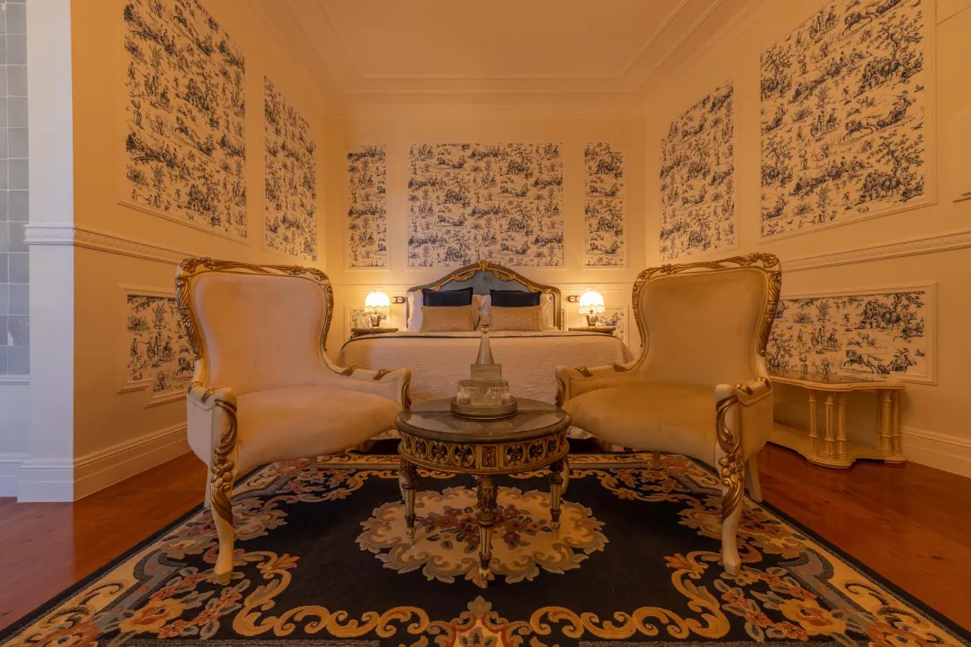 O desafio da CAAL Design surgiu na fase de Finalização de Interiores quando foi necessário escolher tecidos e modelos para cortinados, dosséis e têxteis; papeis de parede; escolher algumas peças de mobiliário, objetos decorativos e o mais importante de tudo: contar uma narrativa de outros tempos através da harmonia de elementos decorativos, recriando uma atmosfera tão palaciana como encantadora!